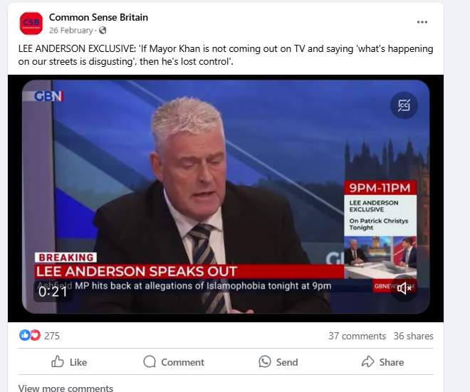 As the sample of screengrabs below shows, Common Sense Britain urges support for Farage and Lee Anderson, who has ended up as a Reform candidate having been a Labour councillor and then Deputy Chair of the Conservative Party.