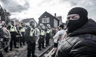 The protest was organised by Callum Barker of the far-right Homeland Party, who has posted images that reference the numerical code “1488”. This code was invented by the US neo-Nazi terrorist David Lane, who was involved in the murder of a Jewish radio host in 1984.
