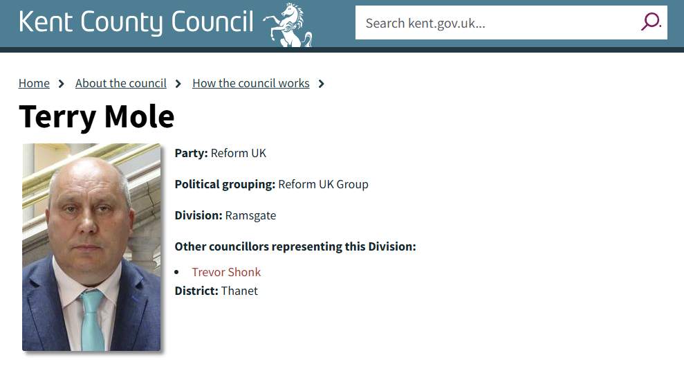Terry Mole (Reform UK, Ramsgate Division) was accused by a constituent of flouting the Localism Act, as he did not disclose his ownership of a delivery firm.
