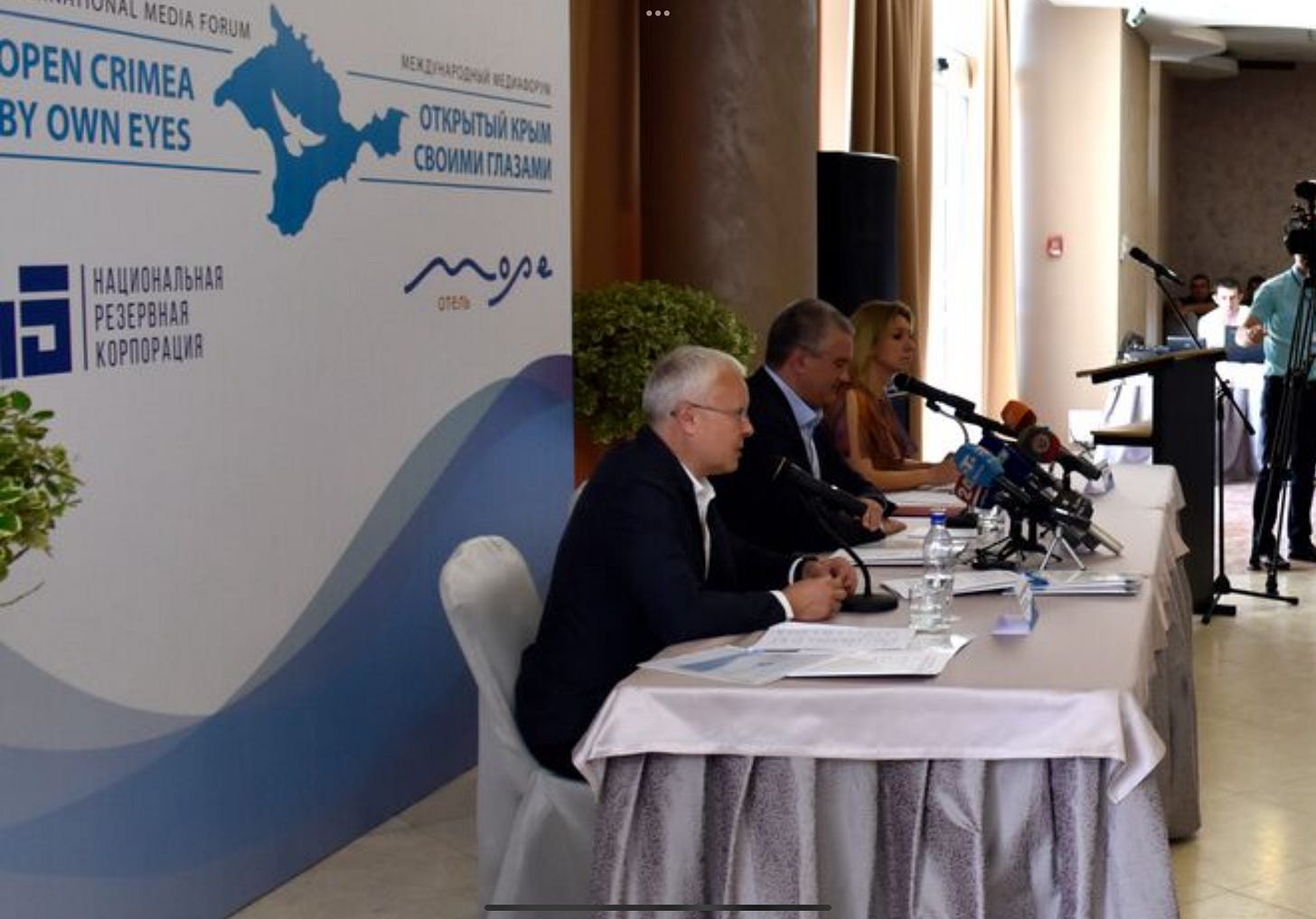 Russian state and local media covered the event in 2017, with Lebedev hosting the conference with Sergey Aksyonov, the Russian-installed “head” of the region, and foreign ministry spokeswoman Maria Zakharova.