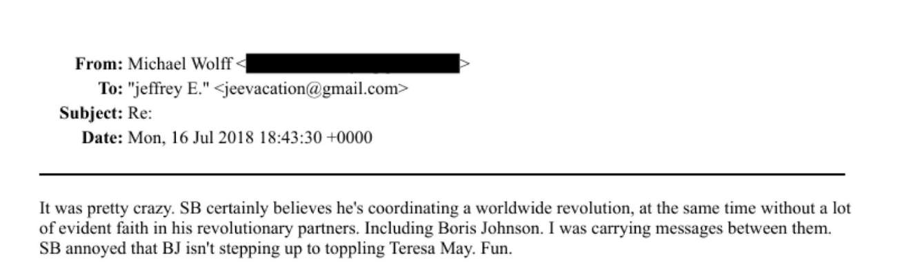 Journalist Michael Wolff separately emailed Epstein, positioning himself as an “intermediary with leadership challenger Boris Johnson.”