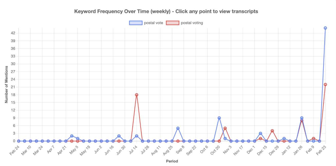 Mentions of postal votes on GB News over the past year