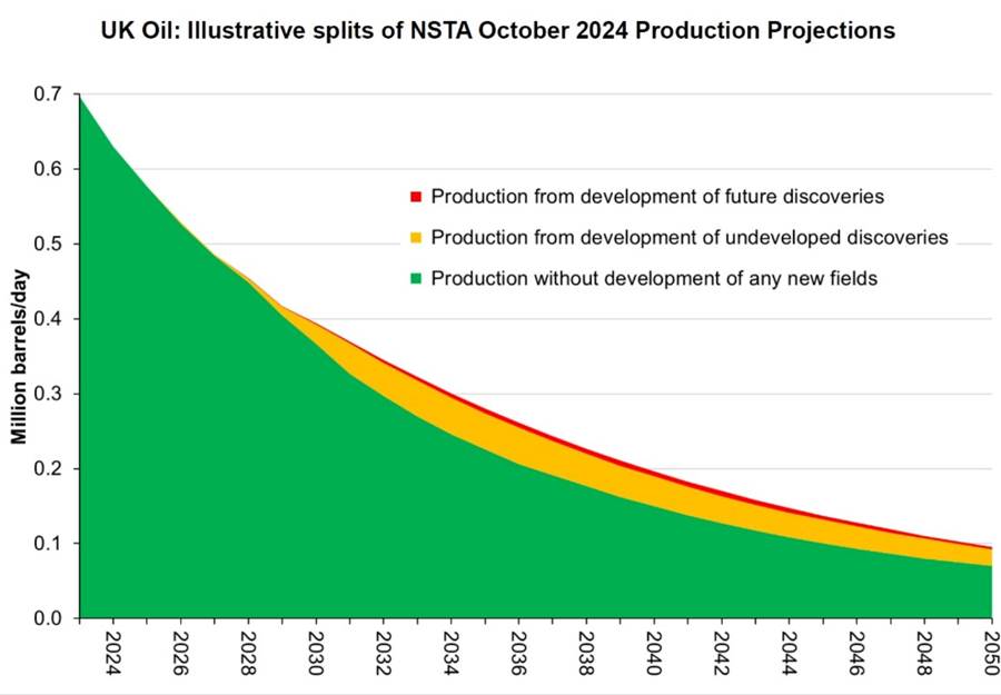 Even Offshore Energies UK’s (OEUK) own 2025 forecast concedes the point. It projected a 3% rise in production in 2025. After 2026, production is expected to enter a natural decline so steep that the widening gap between production and demand cannot be closed by new North Sea licensing.