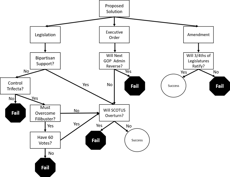 Many of America’s worst problems are the result of flaws in the US constitution that can only be solved by amending it. Amending the constitution is impossible because the current political dynamic and the constitution’s own amendment threshold make it so. The system cannot fix itself.