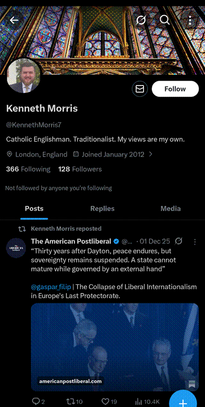 In December last year, he reposted on X (the platform formerly known as Twitter) an American Postliberal article arguing that thirty years after the Dayton Peace Agreement – which ended the Bosnian war and created the state structure Dodik has been sanctioned for undermining – Bosnia and Herzegovina’s “sovereignty remains suspended” and that “a state cannot mature while governed by an external hand”.