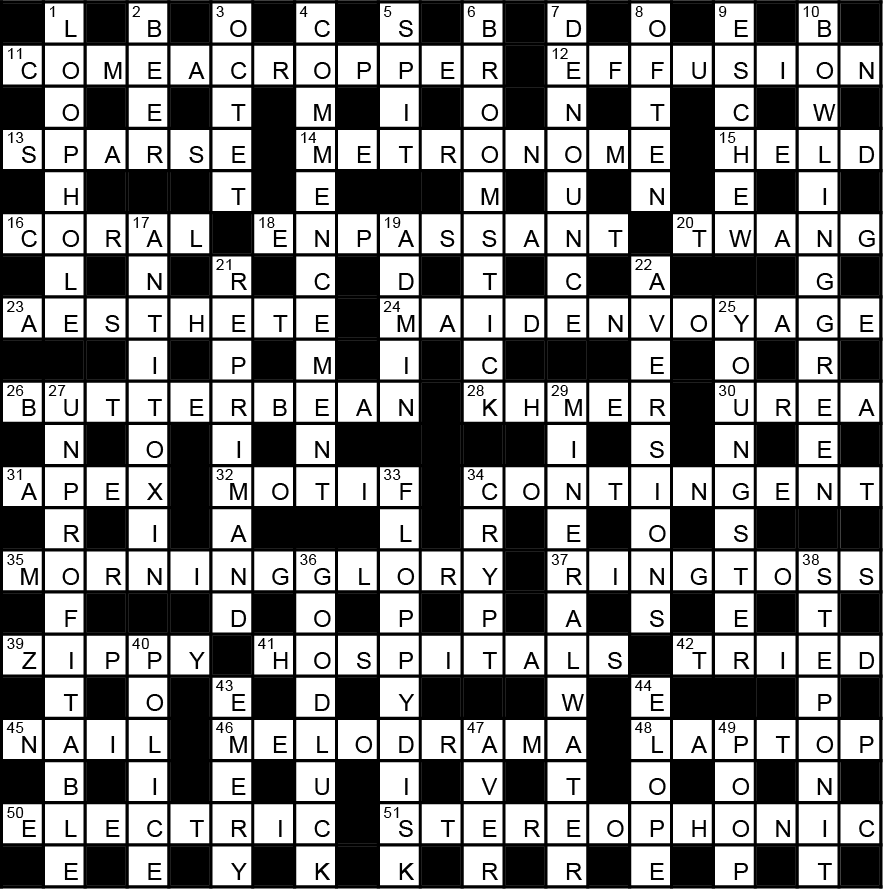 23 Anagram (at sea) of ATE THESE = AESTHETE (art lover),