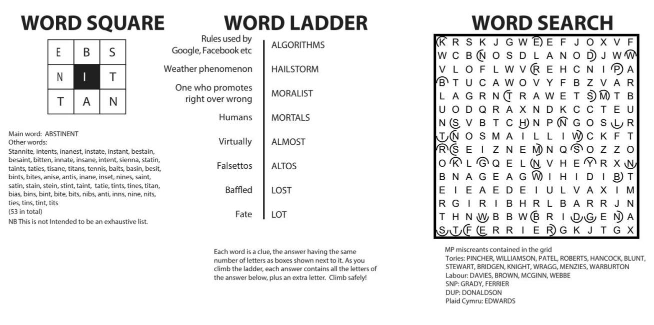 + (N)ew = CARAVAN (group of travellers) Thematic: the Green’s version of the Boris Battlebus (joke), 2 Anagram (all over the place) of A MOGUL PEES = PLAGUESOME (problematic) Thematic: Politicians at election time, 3 Shock (STUN) + Yorkshire way of saying the soldiers (T’MEN) = STUNTMEN (risk takers), 4 Anagram (surprisingly) of PAINTING LOTS SOL(d) minus the last letter (before concluding)= POLLING STATIONS (where to indicate preferences) Thematic: it’s where democracy allegedly happens (yet 75% of our votes are wasted under FPTP), 5 Bags (MASS) + provided (IF) = MASSIF (part of range), 6 Zambian minus (not content) middle letters (ZN) = ZINC in the periodic table, 7 Middle letters (discovered) of aUNt + mostly (MAiNLY) minus i (forgetting one) = UNMANLY (not becoming a bloke) Thematic: gender wars (see also JK Rowling), 14 Anagram (after writing about) of ODd POET TAkES minus (out) both grand (k) and (d)ay = SEED POTATO (something that will grow), 16 Broadcasts (SENDS) containing (welcoming) a distinctive feature (USP) = SUSPENDS Thematic: I bet it’s the fate of a number of Tory candidates(when Rishi discovers his spine), 17 Guts (ENTrAILS) minus (ignoring) (r)ule = ENTAILS (requires), 18 Little animal (RUNT) enclosing green (ECO) = RECOUNT (tell) Thematic: 50 seats? We demand one!, 20 Change (CASH) + at home (IN) + CASH IN (take advantage) Thematic: Option for ministers & friends (see VIP lane), 23 Hidden (taking part) in bayonET CHarge = ETCH (cut).