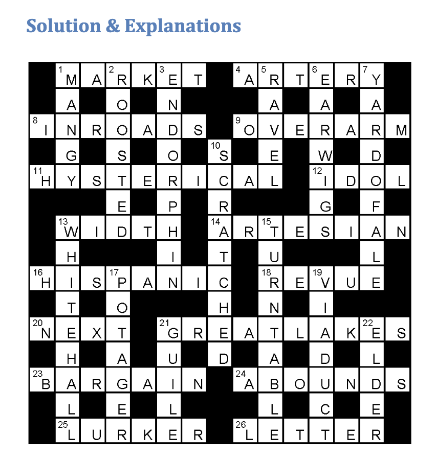 Across: 1 (T)ime + MAKER anagrammed (after riling) = MARKET (bull with this sometimes, ie a bull market), 4 How homophonically (calls) Mrs Collier, presumed Mum of Terry Collier of The Likely Lads fame (60s sitcom set in Liverpool) might refer to her son in a Scouse way – ie AR (our) + TERY (terry) = ARTERY (channel of communication). Sorry 😁!, 8 Popular (IN) + ways (ROADS) = (to make) INROADS (progress), 9 Anagram (organise) of MORE VAR = (to deliver) OVERARM (this level of service, ie above the shoulder), 11 Anagram (off) of HAIRSTYLE + C(ut, a little as 1st letter indicator, justified as it is synonymous with ‘a bit of’, so doesn’t require the possessive ‘of’, IMO) = HYSTERICAL (really funny), 12 Hidden (aspect of) in schizoID OLigarch = IDOL (beloved, in nounal sense), 13 Using (WITH) + D(iamond) inserted (in the centre) = WIDTH (compass), 14 Craft (ART) + even letters (oddly leaving) of sEtSaIl + middle letters (essentially) of crewman (hANd) = ARTESIAN (a kind of well), 16 That boy’s (HIS) + anxiety (PANIC) = HISPANIC (to do with the Spanish), 18 French fantasy (REVE) containing (about) 1st letter (the minimum) of U(nderwear) = REVUE (show), 20 By (X, eg in the sense of times) inserted (logging into – I haven’t seen this as an inserticator, but it means gaining access to so it seems fine to me) www (NET) = NEXT (then), 21 Anagram (cook) of KESTREL in AGA = GREAT LAKES (an impressive amount of water), 23 Appropriate (GRAB) reversed (returns) + A + current (IN) = BARGAIN (contract), 24 When (AS) with forced (BOUND) inserted (to get involved) = ABOUNDS (does well), 25 DD of LURKER (‘here’ meaning crosswordland), 26 DD with 1st def being ‘a’ as dbe (for instance) of LETTER.